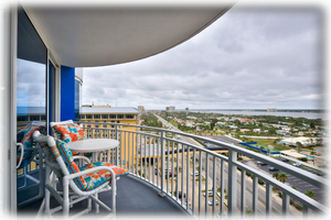 Views, views views ! Peck Plaza is the tallest building on the beach, and it's unique round shape offers panoramic views to the south and west. Each room has a wall of windows with lots to see from our 15th floor vantage point.