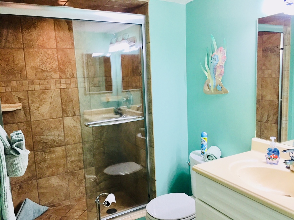 Remodeled guest bathGuest bath with new tile shower
